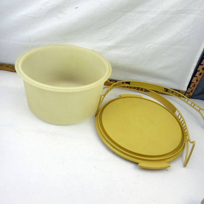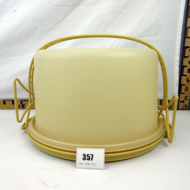 Current Bid: $10.00 [Refresh Price]YOU WILL NEED TO REFRESH THIS PAGE TO SEE UPDATED BID (Log in and this will update automatically) You must LOG IN or REGISTER to see this full page auction listing and bid. Auction is Over Winning Bid Amount: $10.00 **Lot Details: (357q) - Mid century modern yellow Tupperware cake carrier with 2 handles Log in to add this lot to your watch list or place a bid |