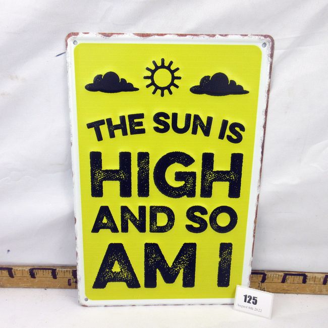 Current Bid: $5.00 [Refresh Price]YOU WILL NEED TO REFRESH THIS PAGE TO SEE UPDATED BID (Log in and this will update automatically) You must LOG IN or REGISTER to see this full page auction listing and bid. Auction is Over Winning Bid Amount: $5.00 **Lot Details: (125r) - Metal sign The Sun Is High 8"W x 11.5"H Log in to add this lot to your watch list or place a bid |