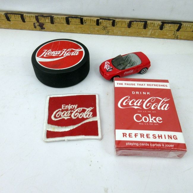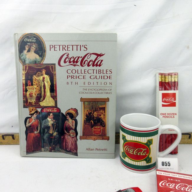 Current Bid: $9.00 [Refresh Price]YOU WILL NEED TO REFRESH THIS PAGE TO SEE UPDATED BID (Log in and this will update automatically) You must LOG IN or REGISTER to see this full page auction listing and bid. Auction is Over Winning Bid Amount: $9.00 **Lot Details: (55s) - Coca Cola lot. One dozen pencils, playing cards, patch, Matchbox convertible, Future Stars puck, Astro Float 1950's in package, mug, Petrettis price guide Log in to add this lot to your watch list or place a bid |