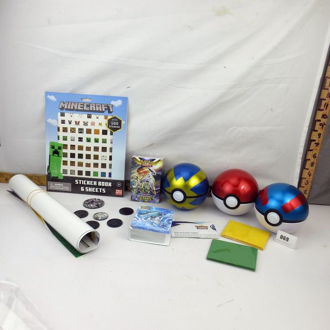 Current Bid: $25.01 [Refresh Price]YOU WILL NEED TO REFRESH THIS PAGE TO SEE UPDATED BID (Log in and this will update automatically) You must LOG IN or REGISTER to see this full page auction listing and bid. Auction is Over Winning Bid Amount: $25.01 **Lot Details: (69s) - Pokemon collection, poster, Poke ball tins, coins, card sleeves, 500 Minecraft sticker book, box filled with cards including holos Log in to add this lot to your watch list or place a bid |