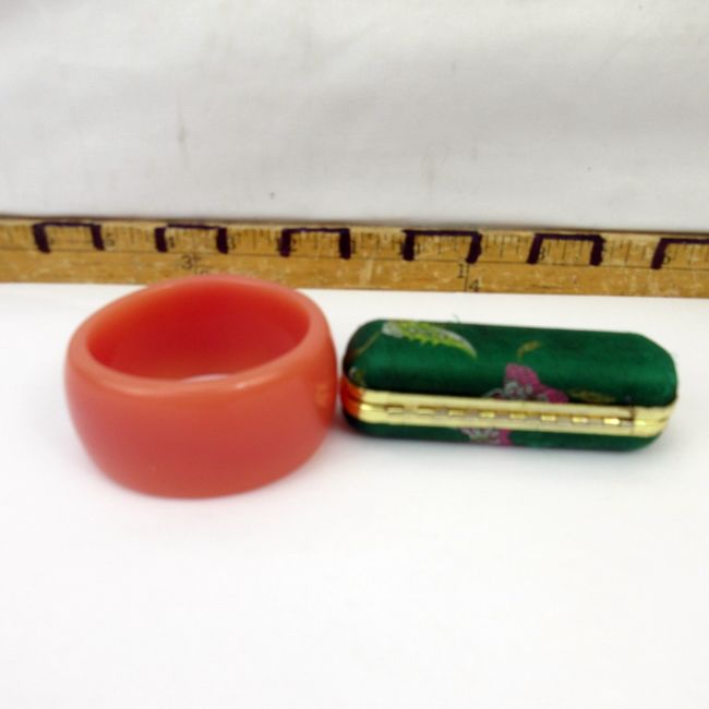 Current Bid: $13.02 [Refresh Price]YOU WILL NEED TO REFRESH THIS PAGE TO SEE UPDATED BID (Log in and this will update automatically) You must LOG IN or REGISTER to see this full page auction listing and bid. Auction is Over Winning Bid Amount: $13.02 **Lot Details: (79s) - Hand carved vintage pink floral bangle bracelet and a lipstick case with mirror inside Log in to add this lot to your watch list or place a bid |