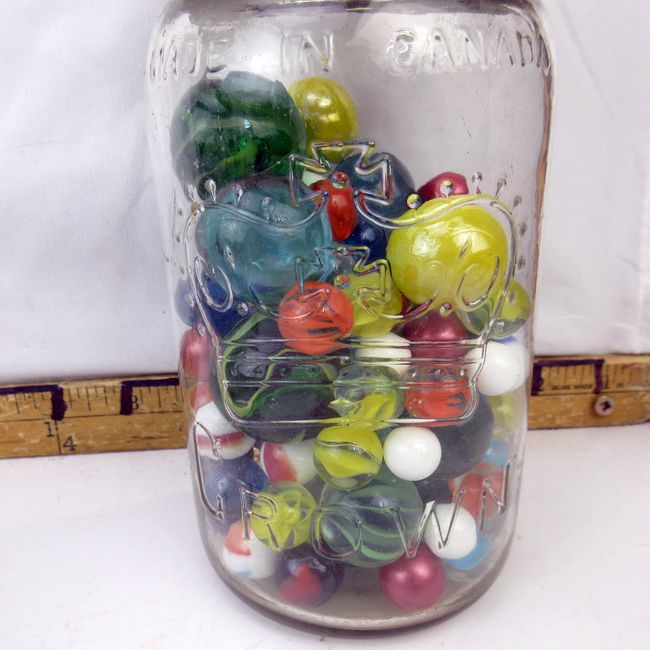 Current Bid: $9.00 [Refresh Price]YOU WILL NEED TO REFRESH THIS PAGE TO SEE UPDATED BID (Log in and this will update automatically) You must LOG IN or REGISTER to see this full page auction listing and bid. Auction is Over Winning Bid Amount: $9.00 **Lot Details: (83s) - 1945 Crown made in Canada Mason jar half filled with marbles and a full box of crystal marbles by Colony Craft Log in to add this lot to your watch list or place a bid |