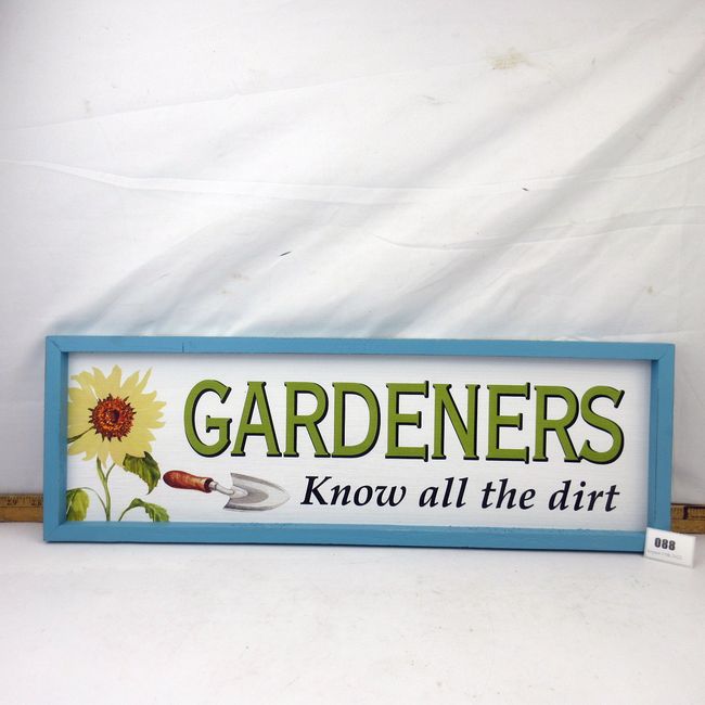 Current Bid: $9.00 [Refresh Price]YOU WILL NEED TO REFRESH THIS PAGE TO SEE UPDATED BID (Log in and this will update automatically) You must LOG IN or REGISTER to see this full page auction listing and bid. Auction is Over Winning Bid Amount: $9.00 **Lot Details: (88s) - Wood framed sign, Gardeners Know all The Dirt 7.5"H x 23.5"L x 1"D Log in to add this lot to your watch list or place a bid |