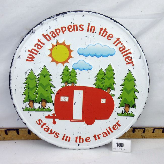 Current Bid: $16.00 [Refresh Price]YOU WILL NEED TO REFRESH THIS PAGE TO SEE UPDATED BID (Log in and this will update automatically) You must LOG IN or REGISTER to see this full page auction listing and bid. Auction is Over Winning Bid Amount: $16.00 **Lot Details: (108s) - Round metal sign, Stays In The Trailer. Neat look 11 3/4" round Log in to add this lot to your watch list or place a bid |