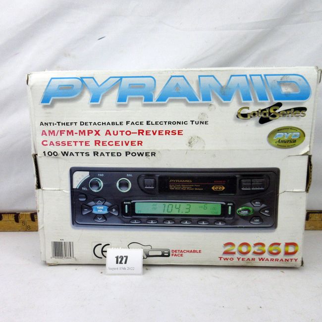Current Bid: $7.00 [Refresh Price]YOU WILL NEED TO REFRESH THIS PAGE TO SEE UPDATED BID (Log in and this will update automatically) You must LOG IN or REGISTER to see this full page auction listing and bid. Auction is Over Winning Bid Amount: $7.00 **Lot Details: (127s) - Pyramid AM/FM/MPX Auto reverse cassette receiver Log in to add this lot to your watch list or place a bid |