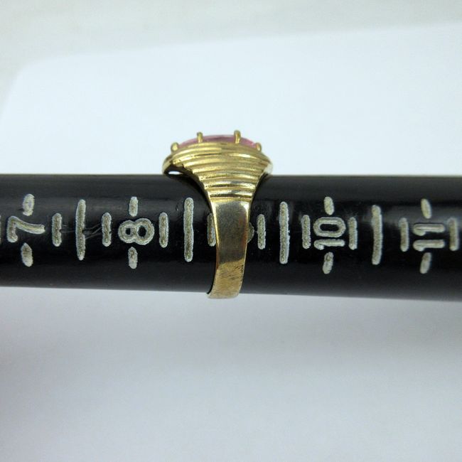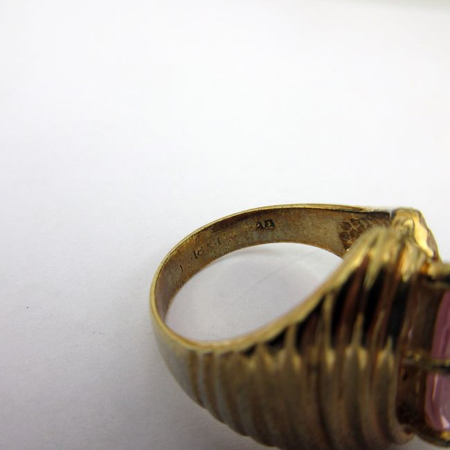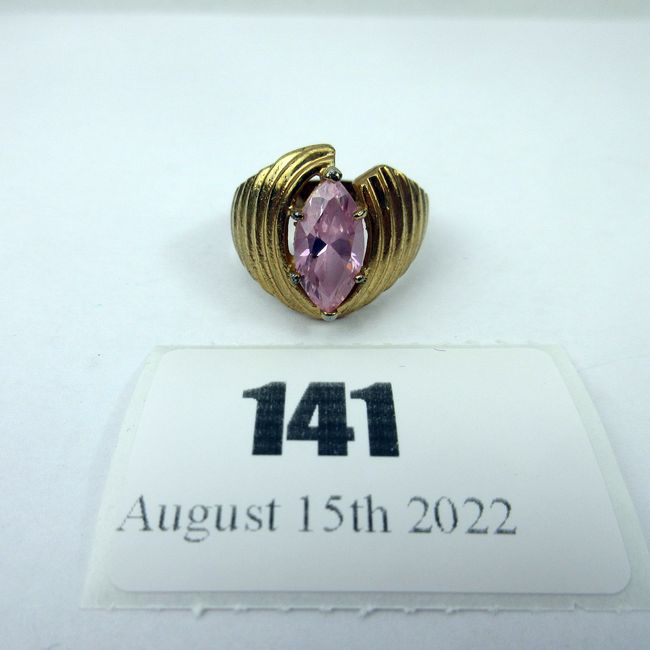 Current Bid: $62.00 [Refresh Price]YOU WILL NEED TO REFRESH THIS PAGE TO SEE UPDATED BID (Log in and this will update automatically) You must LOG IN or REGISTER to see this full page auction listing and bid. Auction is Over Winning Bid Amount: $62.00 **Lot Details: (141s) - A gorgeous vintage marquis cut ring with what appears to be a pink sapphire stone. Appears to be stamped 18KT G.E. PAD but hallmarks are a bit worn so it is hard to read. Log in to add this lot to your watch list or place a bid |