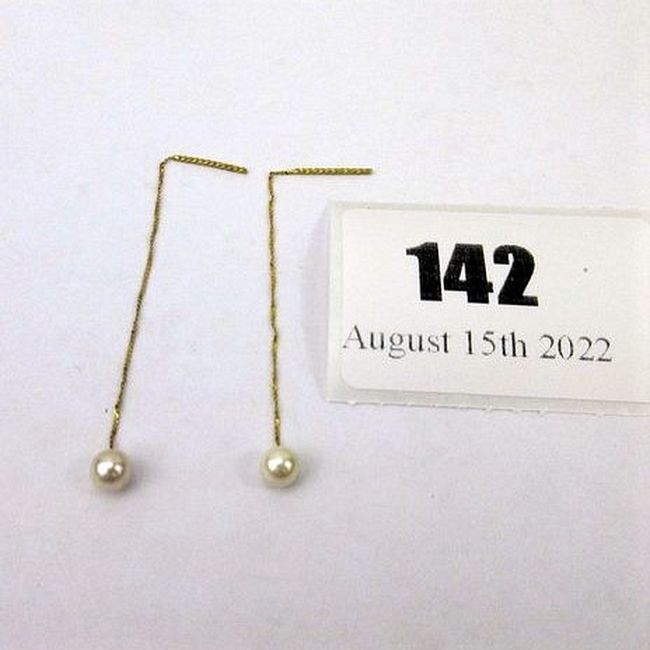 Current Bid: $11.00 [Refresh Price]YOU WILL NEED TO REFRESH THIS PAGE TO SEE UPDATED BID (Log in and this will update automatically) You must LOG IN or REGISTER to see this full page auction listing and bid. Auction is Over Winning Bid Amount: $11.00 **Lot Details: (142s) - An elegant pair of 10 karat gold drop pearl earrings. Can’t see any markings but theu have been tested and verified 10K gold Log in to add this lot to your watch list or place a bid |