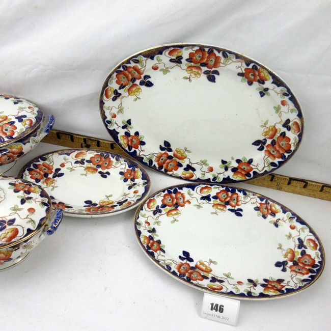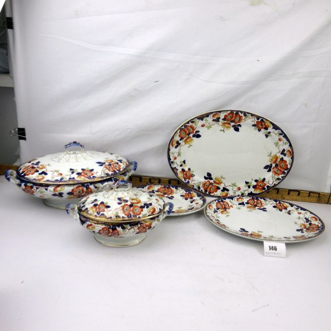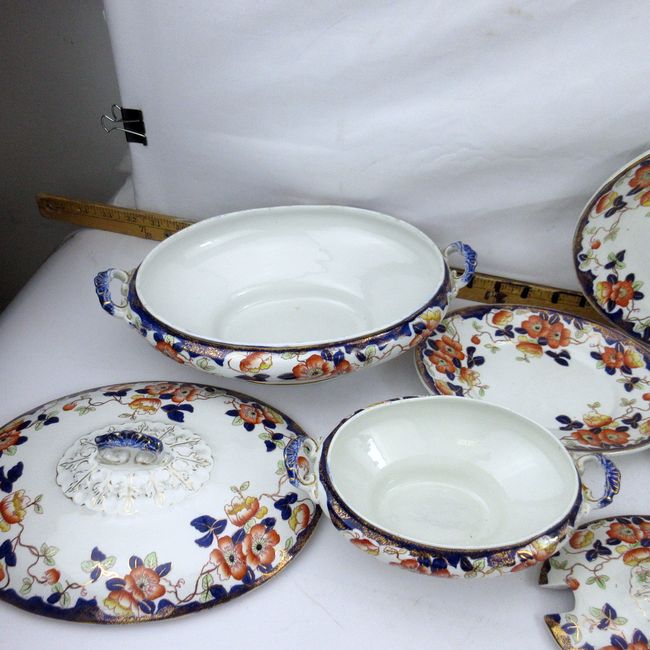 Current Bid: $5.00 [Refresh Price]YOU WILL NEED TO REFRESH THIS PAGE TO SEE UPDATED BID (Log in and this will update automatically) You must LOG IN or REGISTER to see this full page auction listing and bid. Auction is Over Winning Bid Amount: $5.00 **Lot Details: (146s) - An excellent antique Imari style patterned covered dish and plate lot. Conditions consistent with age, one small chip in the handle of the smaller covered dish. Log in to add this lot to your watch list or place a bid |