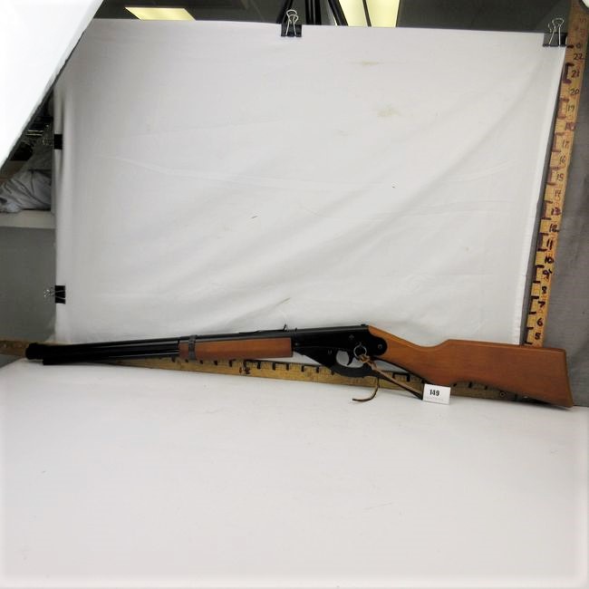 Current Bid: $40.00 [Refresh Price]YOU WILL NEED TO REFRESH THIS PAGE TO SEE UPDATED BID (Log in and this will update automatically) You must LOG IN or REGISTER to see this full page auction listing and bid. Auction is Over Winning Bid Amount: $40.00 **Lot Details: (149s) - Daisy Red Ryder BB gun model 1938B. Log in to add this lot to your watch list or place a bid |