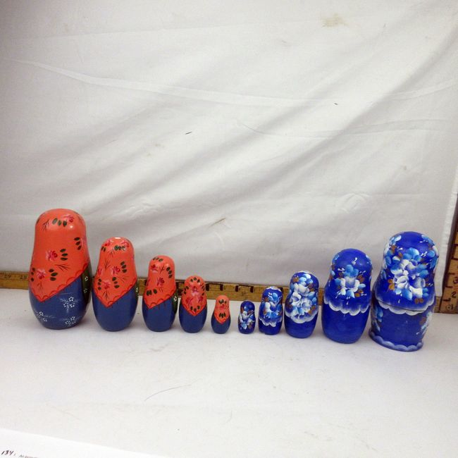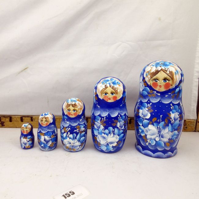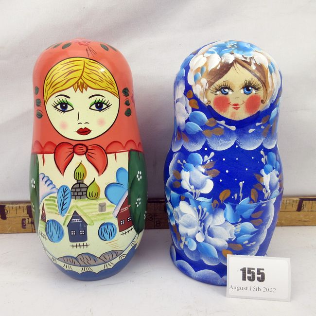 Current Bid: $18.98 [Refresh Price]YOU WILL NEED TO REFRESH THIS PAGE TO SEE UPDATED BID (Log in and this will update automatically) You must LOG IN or REGISTER to see this full page auction listing and bid. Auction is Over Winning Bid Amount: $18.98 **Lot Details: (155s) - Two very nice hand painted wooden Matryoshka nesting doll sets. Each have 5 dolls in total. Log in to add this lot to your watch list or place a bid |