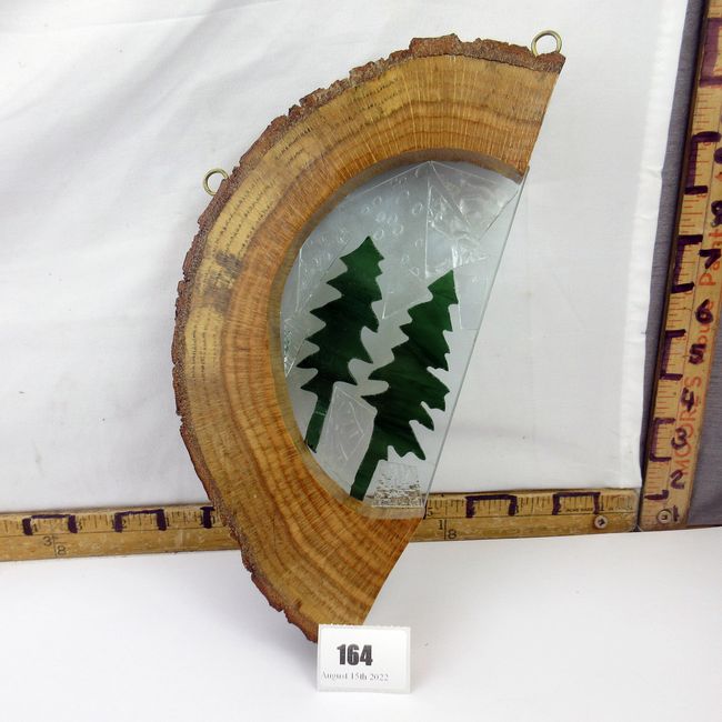 Current Bid: $10.00 [Refresh Price]YOU WILL NEED TO REFRESH THIS PAGE TO SEE UPDATED BID (Log in and this will update automatically) You must LOG IN or REGISTER to see this full page auction listing and bid. Auction is Over Winning Bid Amount: $10.00 **Lot Details: (164s) - A great looking and unique handcrafted live edge wood and glass window hanging/suncatcher. Signed and dated by the talented artist etched into the glass. Log in to add this lot to your watch list or place a bid |