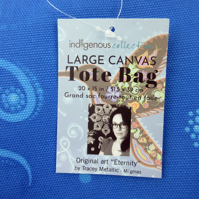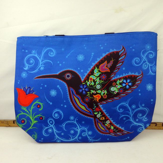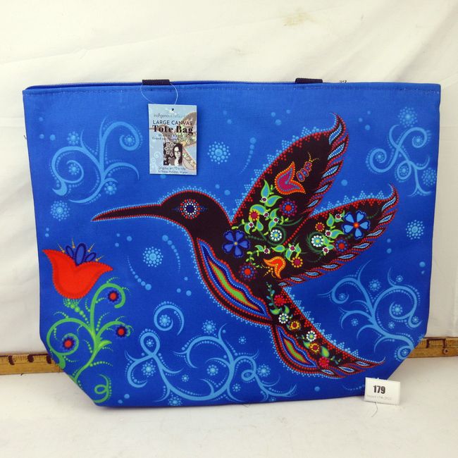 Current Bid: $53.22 [Refresh Price]YOU WILL NEED TO REFRESH THIS PAGE TO SEE UPDATED BID (Log in and this will update automatically) You must LOG IN or REGISTER to see this full page auction listing and bid. Auction is Over Winning Bid Amount: $53.22 **Lot Details: (179s) - Eternity Hummingbird zippered tote bag, large size 20" x 15" x 6" canvas and fully lined with an inside pocket, handle and zipper closure. Features authentic Indigenous art by Mi'Gmaq artist Tracey Metallic. Gorgeous tote bag, new Log in to add this lot to your watch list or place a bid |