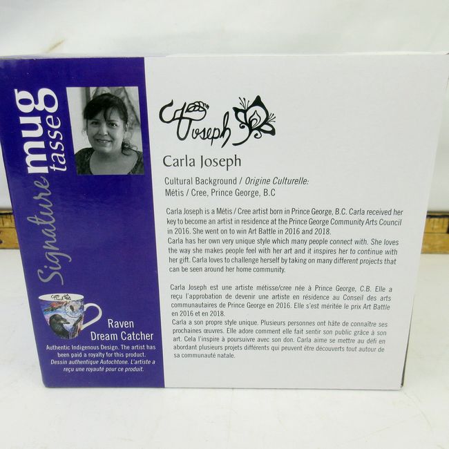 Current Bid: $13.00 [Refresh Price]YOU WILL NEED TO REFRESH THIS PAGE TO SEE UPDATED BID (Log in and this will update automatically) You must LOG IN or REGISTER to see this full page auction listing and bid. Auction is Over Winning Bid Amount: $13.00 **Lot Details: (180s) - Raven Dreamcatcher Signature mug with artwork by Metis/Cree artist Carla Joseph. Authentic Indigenous artwork, beautiful large 18oz mug in box. New Log in to add this lot to your watch list or place a bid |