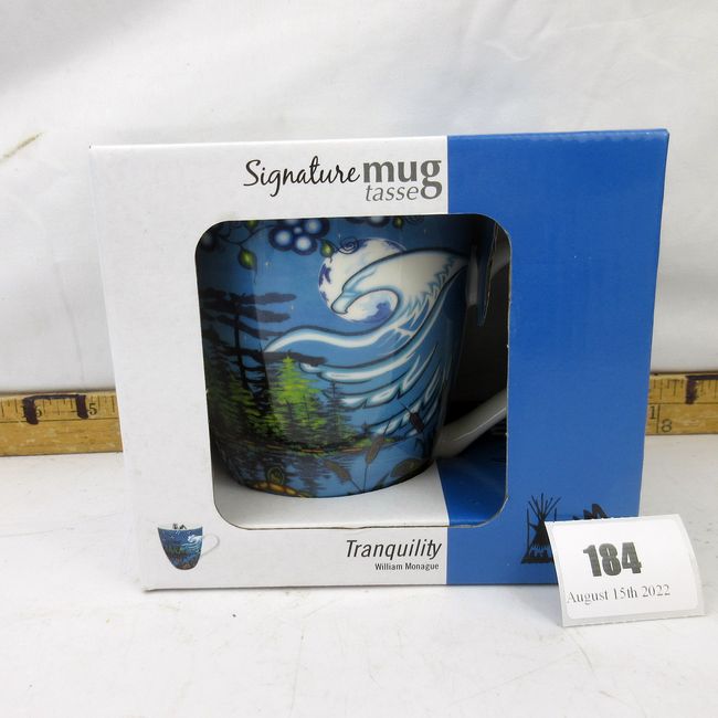 Current Bid: $16.00 [Refresh Price]YOU WILL NEED TO REFRESH THIS PAGE TO SEE UPDATED BID (Log in and this will update automatically) You must LOG IN or REGISTER to see this full page auction listing and bid. Auction is Over Winning Bid Amount: $16.00 **Lot Details: (184s) - Tranquility Signature mug with artwork by Ojibwe artist William Monague. Authentic Indigenous artwork, beautiful large 18oz mug in box. New Log in to add this lot to your watch list or place a bid |