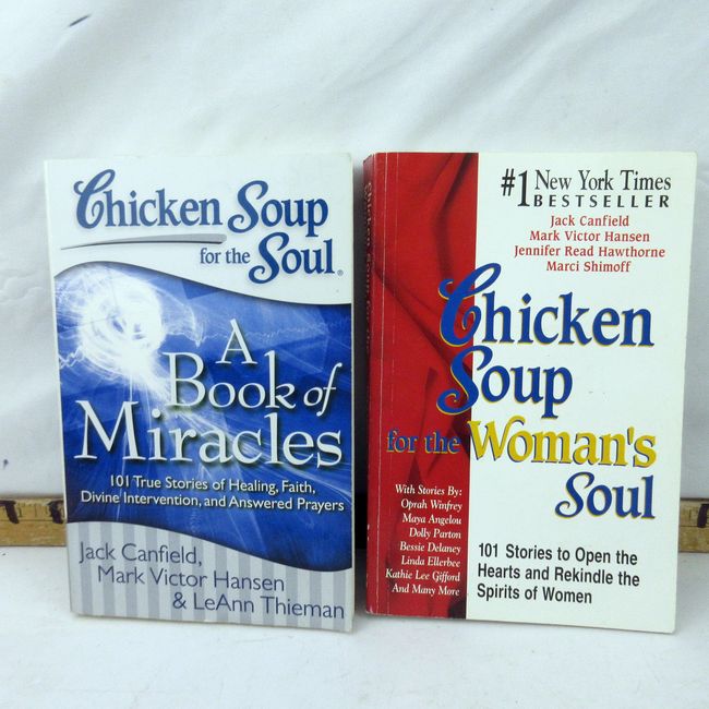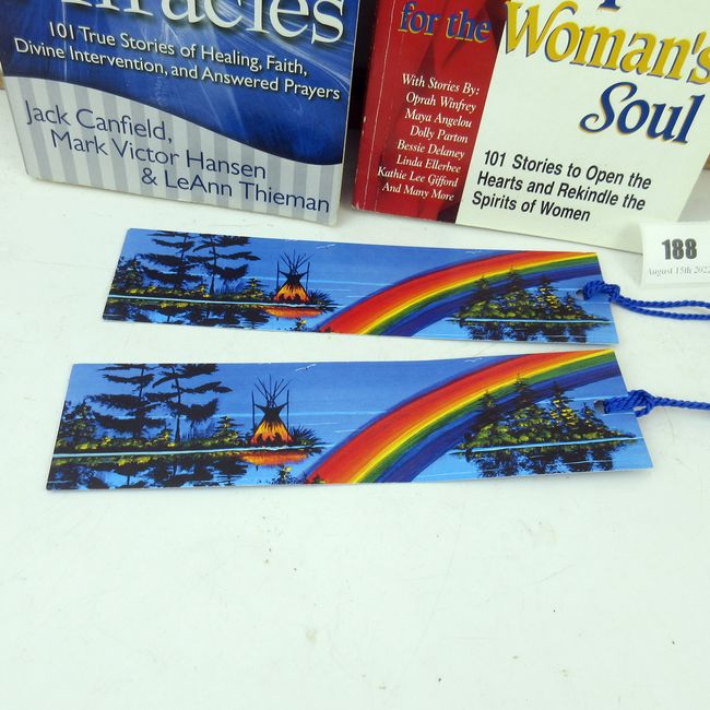Current Bid: $5.00 [Refresh Price]YOU WILL NEED TO REFRESH THIS PAGE TO SEE UPDATED BID (Log in and this will update automatically) You must LOG IN or REGISTER to see this full page auction listing and bid. Auction is Over Winning Bid Amount: $5.00 **Lot Details: (188s) - 2 inspiring Chicken Soup For The Soul books. A Book of Miracles and Woman's Soul. Books are used, good shape and comes with 2 new bookmarks Log in to add this lot to your watch list or place a bid |