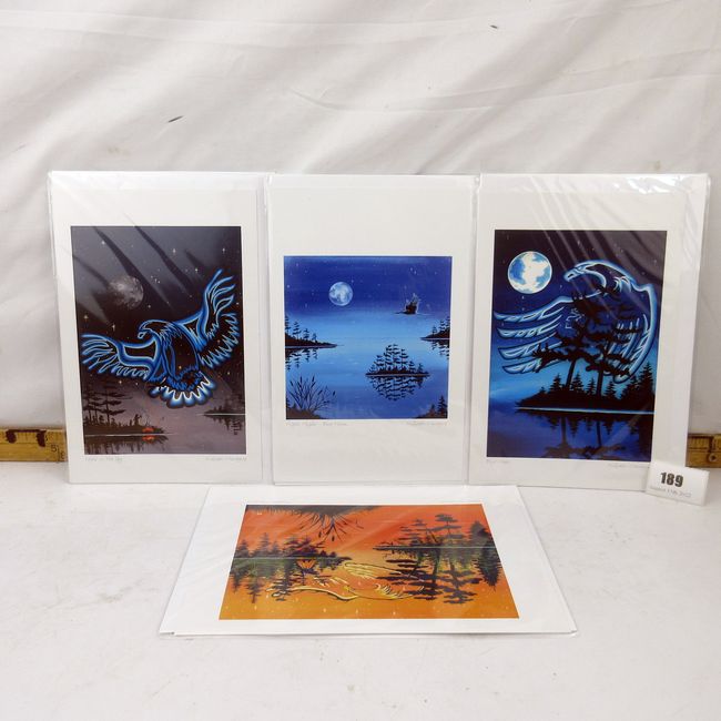 Current Bid: $12.51 [Refresh Price]YOU WILL NEED TO REFRESH THIS PAGE TO SEE UPDATED BID (Log in and this will update automatically) You must LOG IN or REGISTER to see this full page auction listing and bid. Auction is Over Winning Bid Amount: $12.51 **Lot Details: (189s) - 4 Indigenous collectible art cards printed on fine art paper 5" x 7" with artist William Monague biography. Sunset Honeymoon, Night Flight, Eagle in the Sky, Blue Moon. Comes with bio, envelopes and protective sleeves. Great for framing Log in to add this lot to your watch list or place a bid |