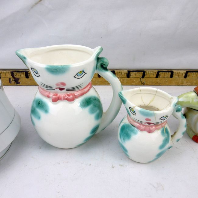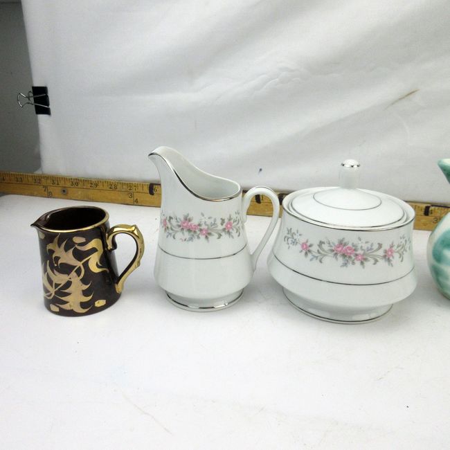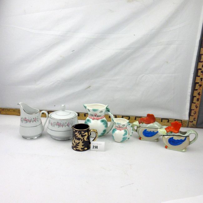Current Bid: $[Refresh Price]YOU WILL NEED TO REFRESH THIS PAGE TO SEE UPDATED BID (Log in and this will update automatically) You must LOG IN or REGISTER to see this full page auction listing and bid. Auction is Over Winning Bid Amount: $This item did not sell **Lot Details: (214s) - Cream and sugar sets. Premiere Fine China, Rose Garden creamer and covered sugar bowl. Vintage Rooster creamer and covered sugar, vintage Cat creamers, small cat has crack repairs. Small brown creamer with gold trim Log in to add this lot to your watch list or place a bid |