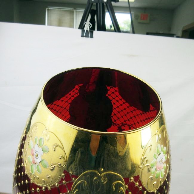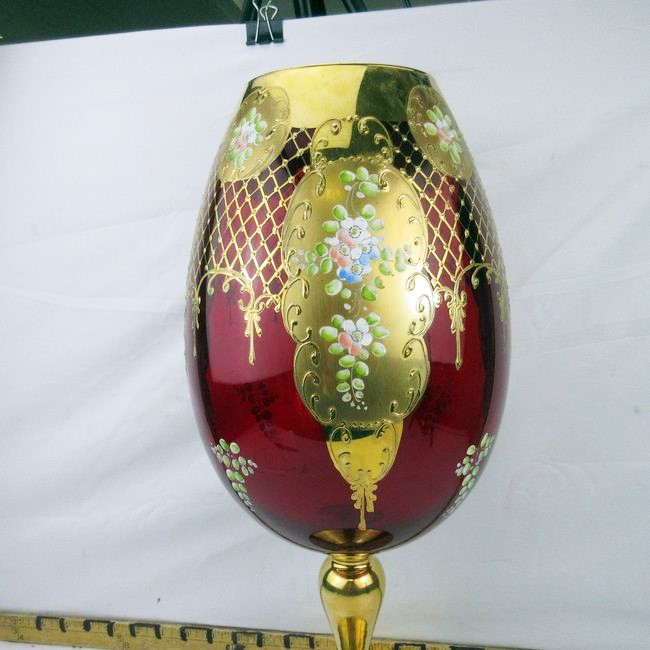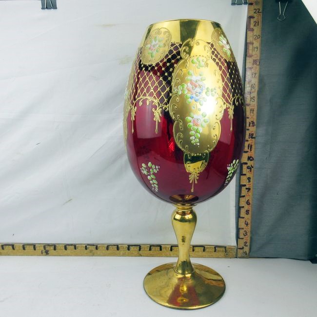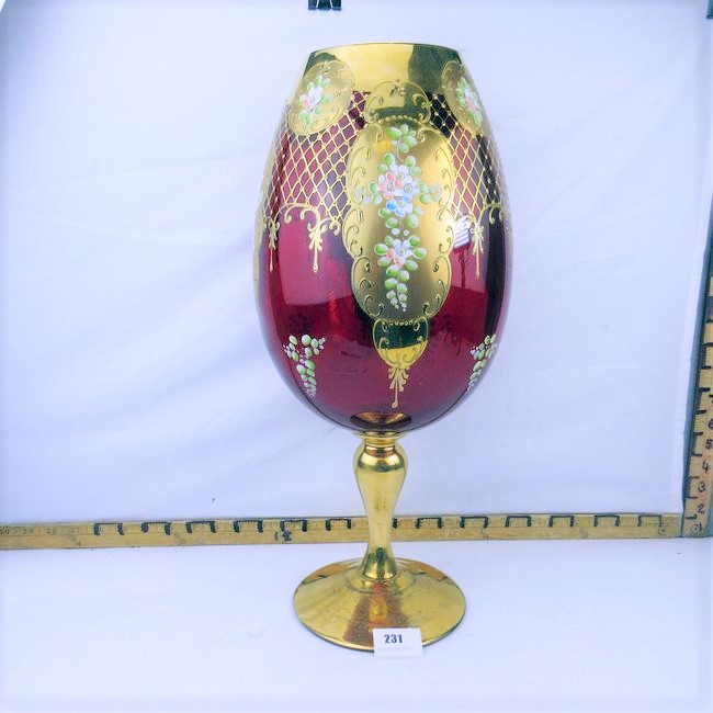 Current Bid: $26.33 [Refresh Price]YOU WILL NEED TO REFRESH THIS PAGE TO SEE UPDATED BID (Log in and this will update automatically) You must LOG IN or REGISTER to see this full page auction listing and bid. Auction is Over Winning Bid Amount: $26.33 **Lot Details: (231s) - Massive gold overlay cranberry ruby red Bohemian glass. No chips, some of the gold at the bottom is wearing off otherwise in great shape Log in to add this lot to your watch list or place a bid |