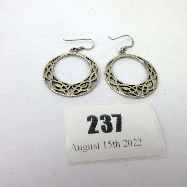 Current Bid: $34.97 [Refresh Price]YOU WILL NEED TO REFRESH THIS PAGE TO SEE UPDATED BID (Log in and this will update automatically) You must LOG IN or REGISTER to see this full page auction listing and bid. Auction is Over Winning Bid Amount: $34.97 **Lot Details: (237s) - A pair of very nice Celtic knot sterling silver earrings. Marked sterling silver Log in to add this lot to your watch list or place a bid |