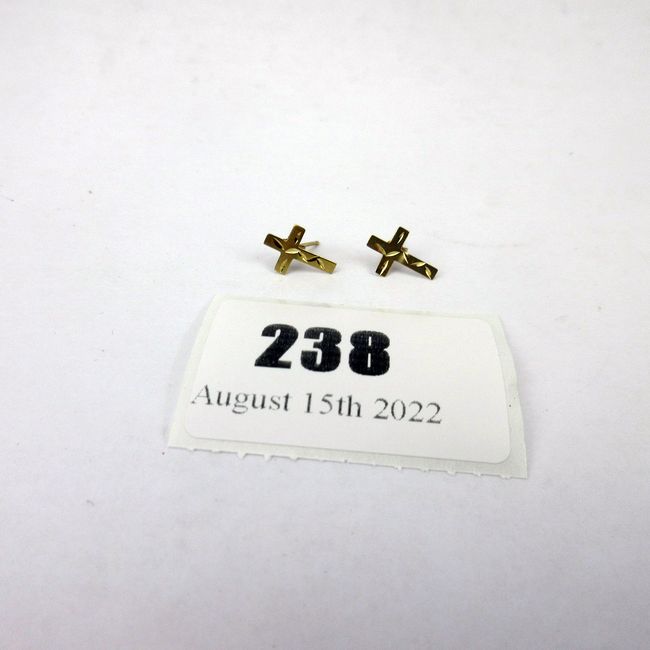 Current Bid: $13.50 [Refresh Price]YOU WILL NEED TO REFRESH THIS PAGE TO SEE UPDATED BID (Log in and this will update automatically) You must LOG IN or REGISTER to see this full page auction listing and bid. Auction is Over Winning Bid Amount: $13.50 **Lot Details: (238s) - A beautiful pair of 10k gold cut cross earrings. Marked and tested as 10k gold Log in to add this lot to your watch list or place a bid |