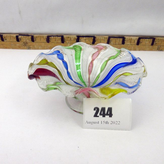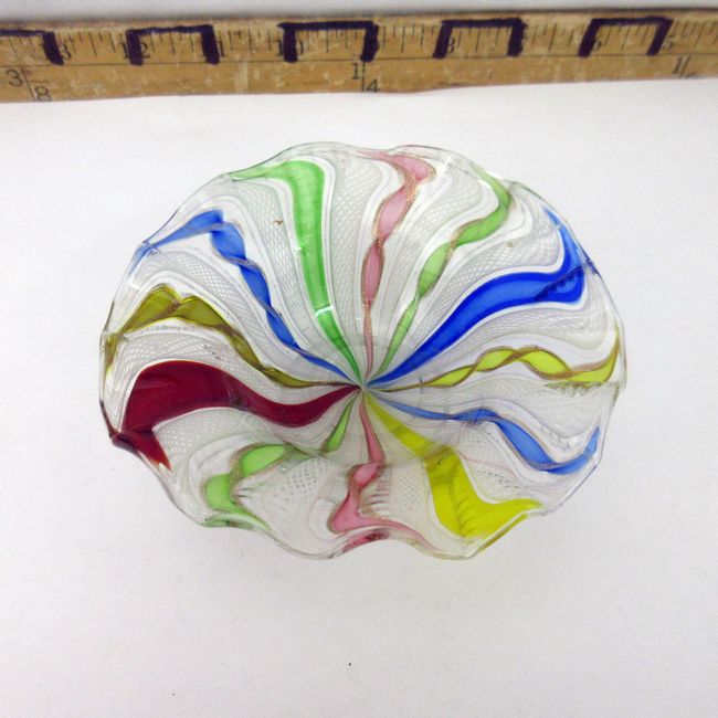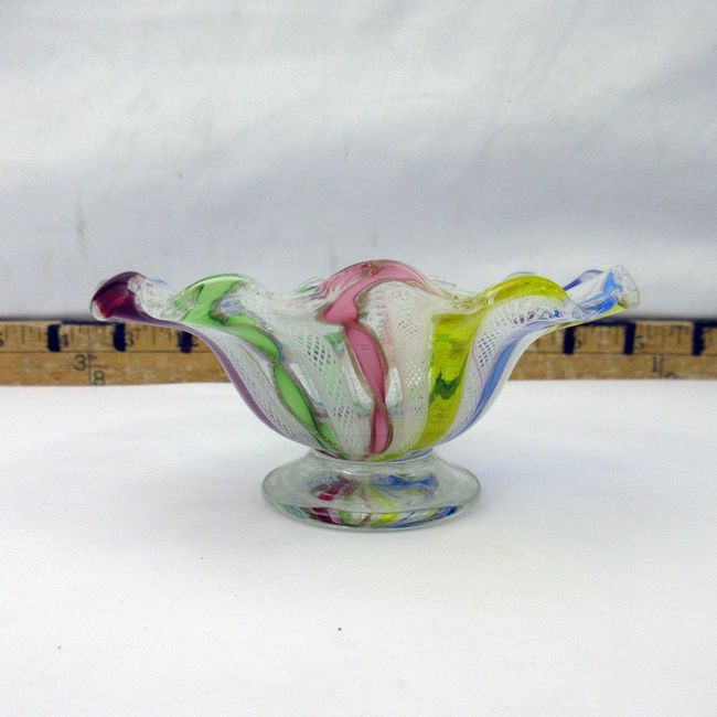 Current Bid: $41.00 [Refresh Price]YOU WILL NEED TO REFRESH THIS PAGE TO SEE UPDATED BID (Log in and this will update automatically) You must LOG IN or REGISTER to see this full page auction listing and bid. Auction is Over Winning Bid Amount: $41.00 **Lot Details: (244s) - A fantastic authentic vintage Murano glass latticino lutz ribbon bowl. High quality hand made and generally expensive Log in to add this lot to your watch list or place a bid |