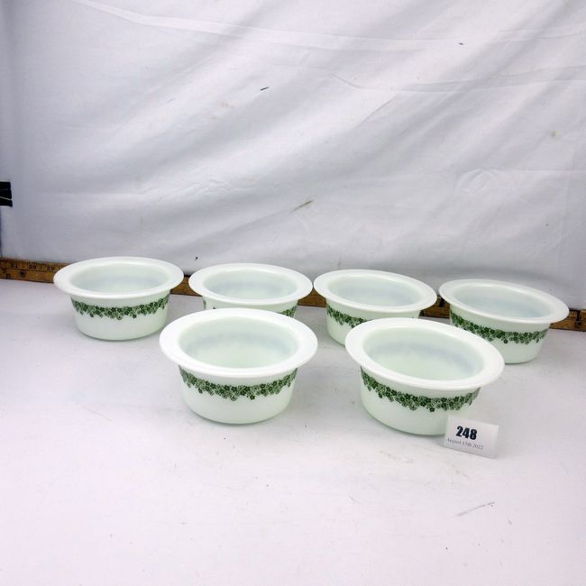 Current Bid: $52.00 [Refresh Price]YOU WILL NEED TO REFRESH THIS PAGE TO SEE UPDATED BID (Log in and this will update automatically) You must LOG IN or REGISTER to see this full page auction listing and bid. Auction is Over Winning Bid Amount: $52.00 **Lot Details: (248s) - A set of very rare Pyrex spring blossom butter tub bowls. Basically unused condition. Seldomly seen, let alone 6 Log in to add this lot to your watch list or place a bid |