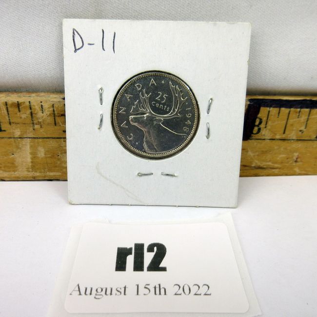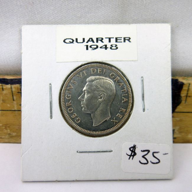 Current Bid: $50.00 [Refresh Price]YOU WILL NEED TO REFRESH THIS PAGE TO SEE UPDATED BID (Log in and this will update automatically) You must LOG IN or REGISTER to see this full page auction listing and bid. Auction is Over Winning Bid Amount: $50.00 **Lot Details: (RL2) - Canada 1948 Silver quarter. Difficult year, in great condition Log in to add this lot to your watch list or place a bid |