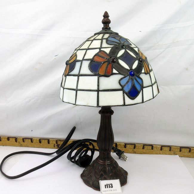 Current Bid: $11.00 [Refresh Price]YOU WILL NEED TO REFRESH THIS PAGE TO SEE UPDATED BID (Log in and this will update automatically) You must LOG IN or REGISTER to see this full page auction listing and bid. Auction is Over Winning Bid Amount: $11.00 **Lot Details: (RL13) - Tiffany style lamp, cracks in the shade. As is. It still looks lovely. Log in to add this lot to your watch list or place a bid |