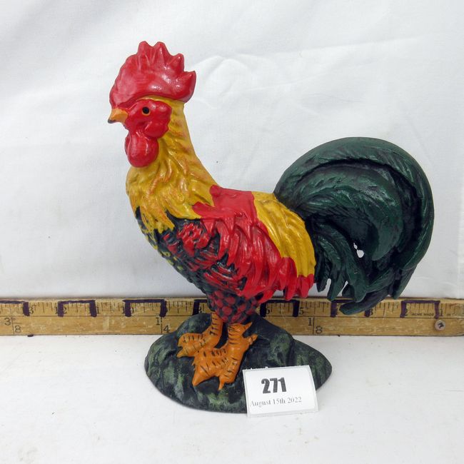 Current Bid: $9.00 [Refresh Price]YOU WILL NEED TO REFRESH THIS PAGE TO SEE UPDATED BID (Log in and this will update automatically) You must LOG IN or REGISTER to see this full page auction listing and bid. Auction is Over Winning Bid Amount: $9.00 **Lot Details: (271s) - A great looking vintage cast iron rooster doorstop. Log in to add this lot to your watch list or place a bid |