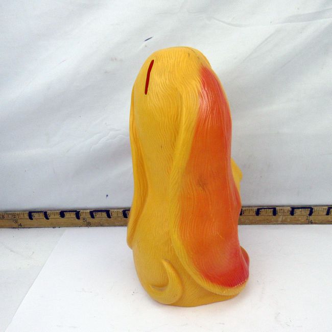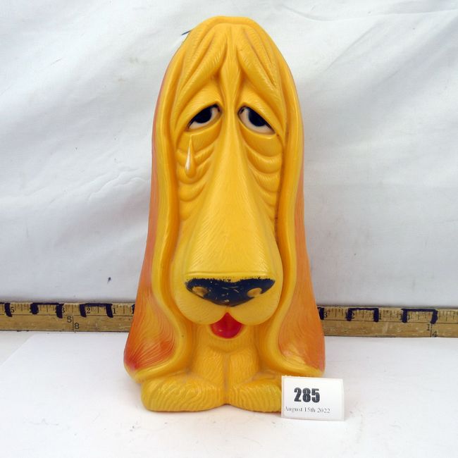 Current Bid: $24.06 [Refresh Price]YOU WILL NEED TO REFRESH THIS PAGE TO SEE UPDATED BID (Log in and this will update automatically) You must LOG IN or REGISTER to see this full page auction listing and bid. Auction is Over Winning Bid Amount: $24.06 **Lot Details: (285s) - A great looking vintage Reliable toys sad dog coin bank. Very good condition for its age, complete with original plug. Approximately 10.5” tall. Log in to add this lot to your watch list or place a bid |