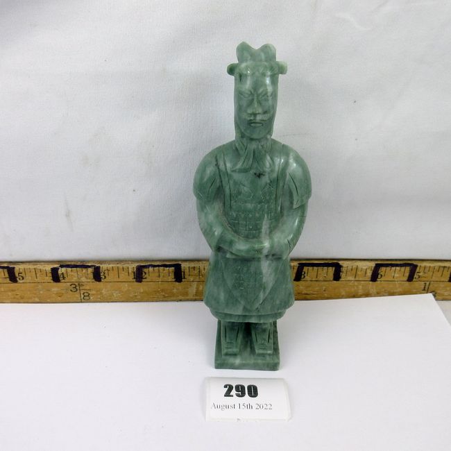 Current Bid: $9.00 [Refresh Price]YOU WILL NEED TO REFRESH THIS PAGE TO SEE UPDATED BID (Log in and this will update automatically) You must LOG IN or REGISTER to see this full page auction listing and bid. Auction is Over Winning Bid Amount: $9.00 **Lot Details: (290s) - A very nicely carved green stone Chinese terra cotta warrior sculpture. Unsure of exact age or type of stone. Log in to add this lot to your watch list or place a bid |