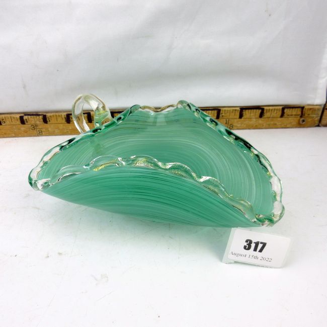 Current Bid: $7.00 [Refresh Price]YOU WILL NEED TO REFRESH THIS PAGE TO SEE UPDATED BID (Log in and this will update automatically) You must LOG IN or REGISTER to see this full page auction listing and bid. Auction is Over Winning Bid Amount: $7.00 **Lot Details: (317s) - Beautiful 7" art glass dish hand made with beautiful colors. Excellent condition. Log in to add this lot to your watch list or place a bid |