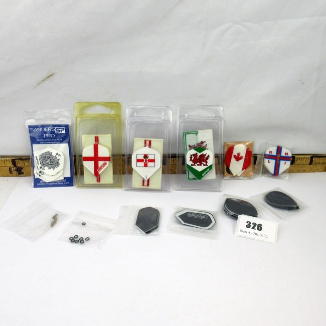Current Bid: $7.00 [Refresh Price]YOU WILL NEED TO REFRESH THIS PAGE TO SEE UPDATED BID (Log in and this will update automatically) You must LOG IN or REGISTER to see this full page auction listing and bid. Auction is Over Winning Bid Amount: $7.00 **Lot Details: (326s) - Lot of 10 assorted printed dart flights. All new in the package and some include matching patches. Log in to add this lot to your watch list or place a bid |