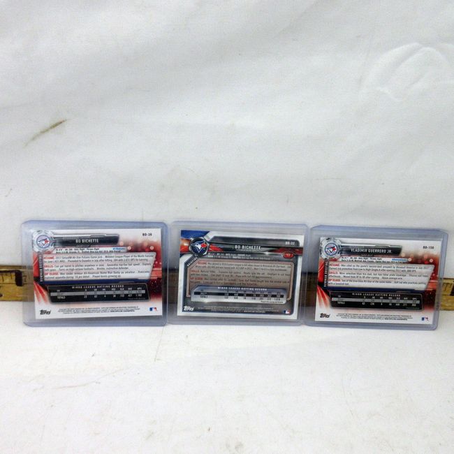 Current Bid: $7.07 [Refresh Price]YOU WILL NEED TO REFRESH THIS PAGE TO SEE UPDATED BID (Log in and this will update automatically) You must LOG IN or REGISTER to see this full page auction listing and bid. Auction is Over Winning Bid Amount: $7.07 **Lot Details: (334s) - Lot of 3 Toronto Blue Jays Young All-Star Pre-Rookie prospect cards with 2 Bichettes & a Vladdy Jr. Log in to add this lot to your watch list or place a bid |