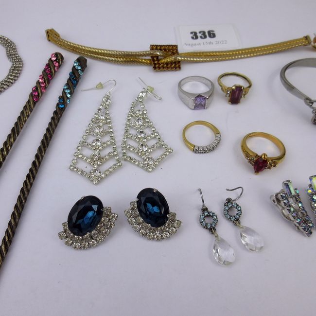 Current Bid: $35.00 [Refresh Price]YOU WILL NEED TO REFRESH THIS PAGE TO SEE UPDATED BID (Log in and this will update automatically) You must LOG IN or REGISTER to see this full page auction listing and bid. Auction is Over Winning Bid Amount: $35.00 **Lot Details: (336s) - Giant lot of assorted rhinestone and crystal jewelry. Includes a number of vintage pieces. Doesn't appear to be any missing stones, just light wear. Log in to add this lot to your watch list or place a bid |