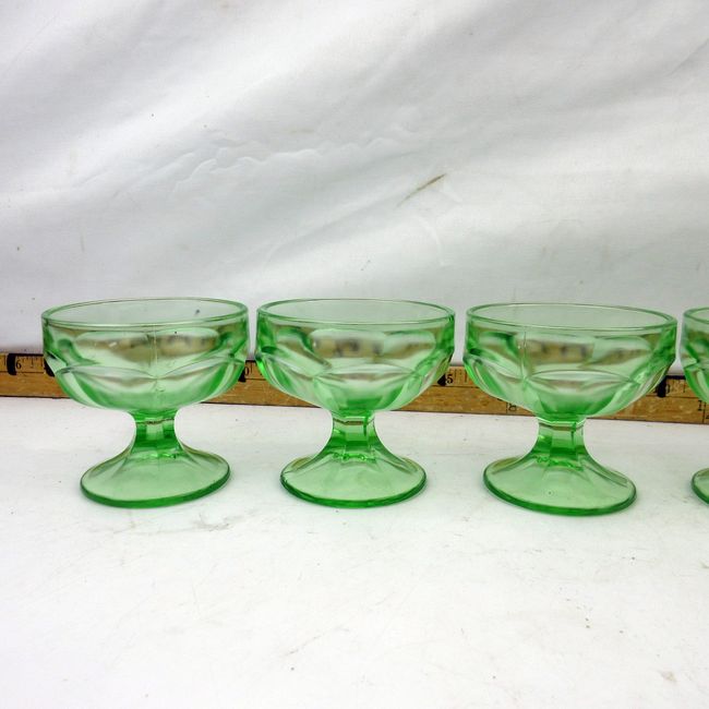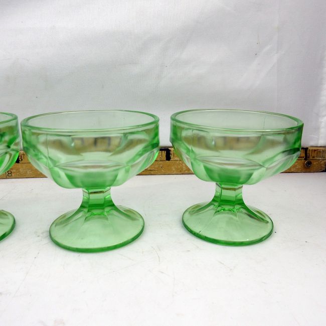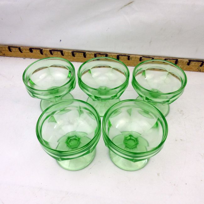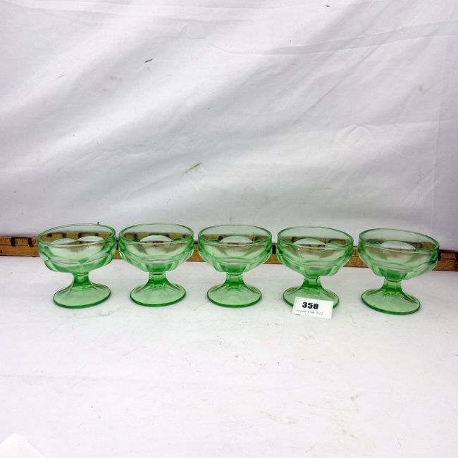 Current Bid: $23.00 [Refresh Price]YOU WILL NEED TO REFRESH THIS PAGE TO SEE UPDATED BID (Log in and this will update automatically) You must LOG IN or REGISTER to see this full page auction listing and bid. Auction is Over Winning Bid Amount: $23.00 **Lot Details: (350s) - Lot of 5 vintage green pressed glass desert dishes. In great shape overall, but there is one small chip. Log in to add this lot to your watch list or place a bid |