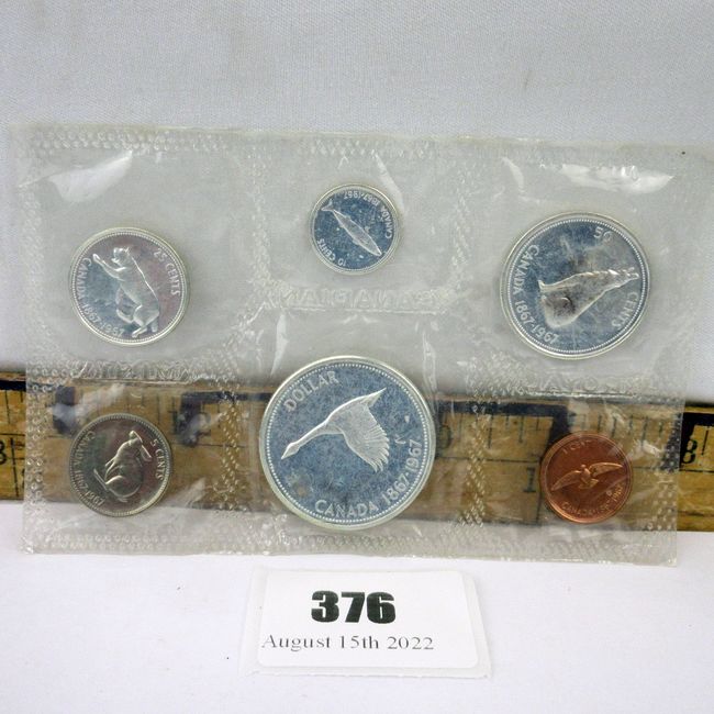 Current Bid: $44.00 [Refresh Price]YOU WILL NEED TO REFRESH THIS PAGE TO SEE UPDATED BID (Log in and this will update automatically) You must LOG IN or REGISTER to see this full page auction listing and bid. Auction is Over Winning Bid Amount: $44.00 **Lot Details: (376s) - 1967 Royal Canadian Mint coin set Log in to add this lot to your watch list or place a bid |