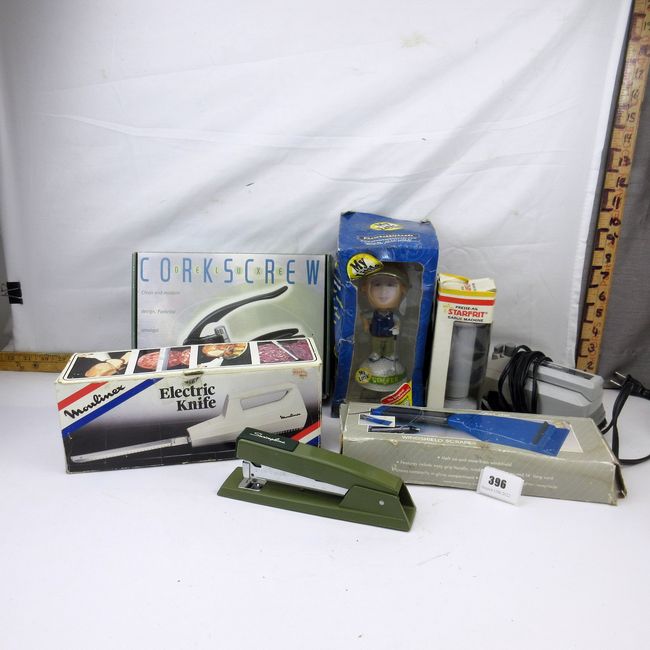 Current Bid: $14.00 [Refresh Price]YOU WILL NEED TO REFRESH THIS PAGE TO SEE UPDATED BID (Log in and this will update automatically) You must LOG IN or REGISTER to see this full page auction listing and bid. Auction is Over Winning Bid Amount: $14.00 **Lot Details: (396s) - corkscrew Deluxe, electric steam cleaner, electric knife, garlic machine, windshield scraper plug in, photo bobble head, stapler Log in to add this lot to your watch list or place a bid |