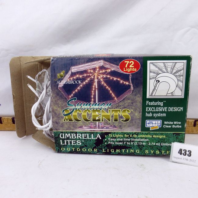 Current Bid: $9.00 [Refresh Price]YOU WILL NEED TO REFRESH THIS PAGE TO SEE UPDATED BID (Log in and this will update automatically) You must LOG IN or REGISTER to see this full page auction listing and bid. Auction is Over Winning Bid Amount: $9.00 **Lot Details: (433s) - alderbrook patio umbrella 72 lights, open box Log in to add this lot to your watch list or place a bid |