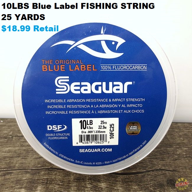 Current Bid: $5.00 [Refresh Price]YOU WILL NEED TO REFRESH THIS PAGE TO SEE UPDATED BID (Log in and this will update automatically) You must LOG IN or REGISTER to see this full page auction listing and bid. Auction is Over Winning Bid Amount: $5.00 **Lot Details: (456s) - Seaguar Fishing Line. 10 LB, Blue Label, 25 YD. Abrasion resistant. 100 percent fluorocarbon. Go get that wh@pper! NEW. Log in to add this lot to your watch list or place a bid |