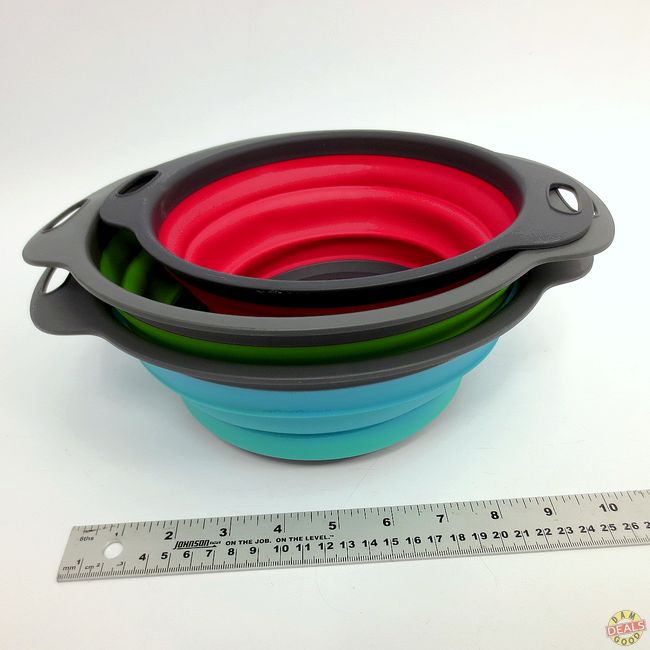 Current Bid: $9.00 [Refresh Price]YOU WILL NEED TO REFRESH THIS PAGE TO SEE UPDATED BID (Log in and this will update automatically) You must LOG IN or REGISTER to see this full page auction listing and bid. Auction is Over Winning Bid Amount: $9.00 **Lot Details: (493s) - 3 Collapsible Silicone Colanders. They take up much less room. 2 X 4 Q and 1 X 2 Q. Great for camping , R.V., at home. NEW Log in to add this lot to your watch list or place a bid |