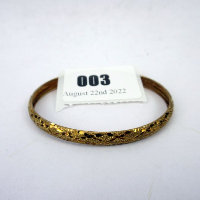 Current Bid: $132.00 [Refresh Price]YOU WILL NEED TO REFRESH THIS PAGE TO SEE UPDATED BID (Log in and this will update automatically) You must LOG IN or REGISTER to see this full page auction listing and bid. Auction is Over Winning Bid Amount: $132.00 **Lot Details: (3t) - Classic ladies solid 10K Yellow Gold bracelet/bangle. Total weight is 4.7 grams with circumference of 8" and a width of 6mm. Bracelet is new in box and has an additional safety clasp. Great gift! Log in to add this lot to your watch list or place a bid |