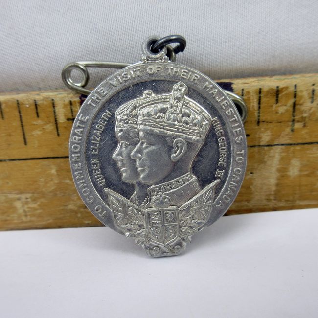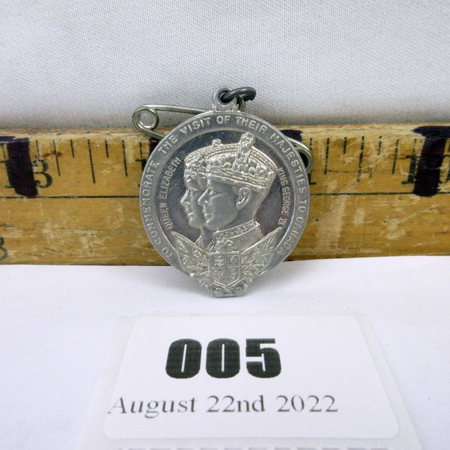 Current Bid: $14.00 [Refresh Price]YOU WILL NEED TO REFRESH THIS PAGE TO SEE UPDATED BID (Log in and this will update automatically) You must LOG IN or REGISTER to see this full page auction listing and bid. Auction is Over Winning Bid Amount: $14.00 **Lot Details: (5t) - Birks Canada 1939 white metal medal to commemorate the Royal Visit. Gorgeous condition with original pin Log in to add this lot to your watch list or place a bid |