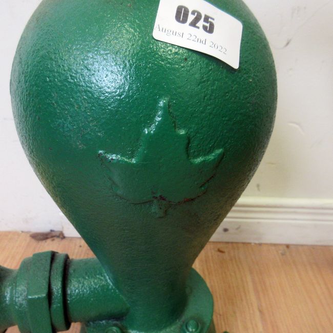 Current Bid: $67.00 [Refresh Price]YOU WILL NEED TO REFRESH THIS PAGE TO SEE UPDATED BID (Log in and this will update automatically) You must LOG IN or REGISTER to see this full page auction listing and bid. Auction is Over Winning Bid Amount: $67.00 **Lot Details: (25t) - Awesome Vintage Cast Iron MAPLE LEAF Water Well Pump very heavy approx 17" plus high great country piece in very good condition untested Log in to add this lot to your watch list or place a bid |
