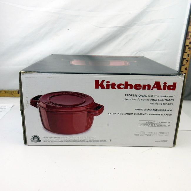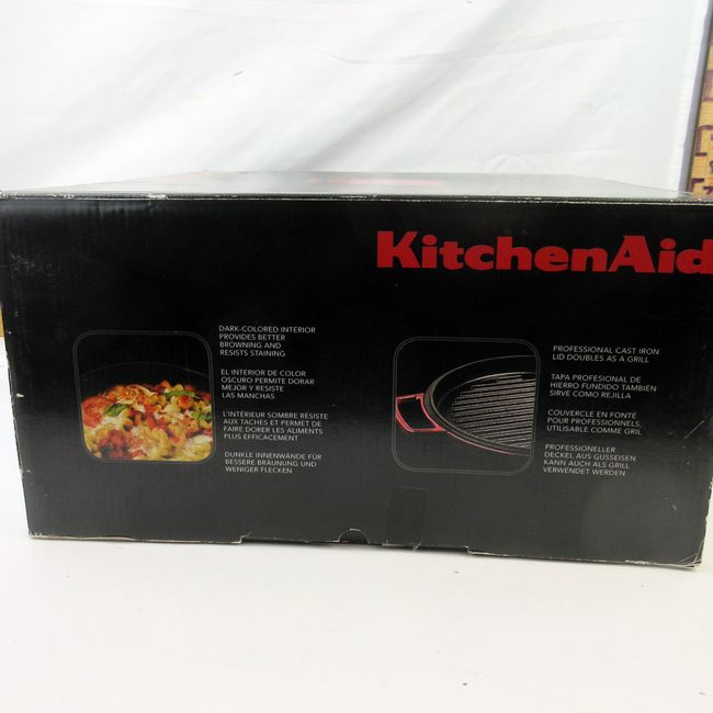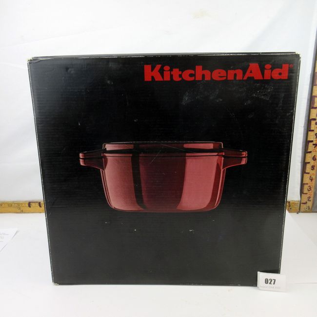 Current Bid: $33.00 [Refresh Price]YOU WILL NEED TO REFRESH THIS PAGE TO SEE UPDATED BID (Log in and this will update automatically) You must LOG IN or REGISTER to see this full page auction listing and bid. Auction is Over Winning Bid Amount: $33.00 **Lot Details: (27t) - Never used, KitchenAid large Grill Dutch Oven, reversible lid doubles as a grill, box has been opened in original packaging, consignor found one minor mark on edge of a handle upon opening to ensure NEW Log in to add this lot to your watch list or place a bid |