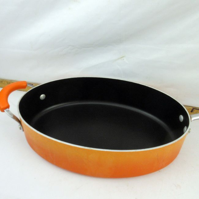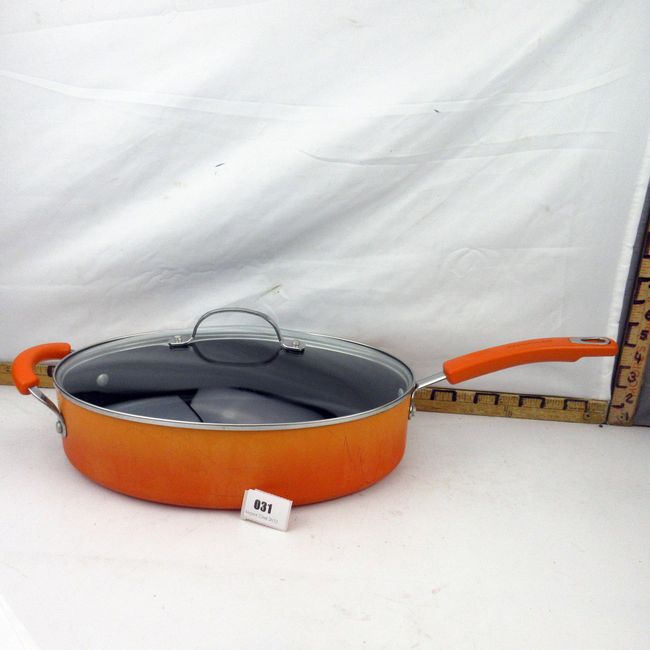 Current Bid: $14.00 [Refresh Price]YOU WILL NEED TO REFRESH THIS PAGE TO SEE UPDATED BID (Log in and this will update automatically) You must LOG IN or REGISTER to see this full page auction listing and bid. Auction is Over Winning Bid Amount: $14.00 **Lot Details: (31t) - Barely used large Rachael Ray Deep Oval Nonstick Frying Pan Orange Gradient in almost new condition, 23" wide x 3 3/4" deep no lid Log in to add this lot to your watch list or place a bid |