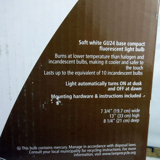 Current Bid: $19.00 [Refresh Price]YOU WILL NEED TO REFRESH THIS PAGE TO SEE UPDATED BID (Log in and this will update automatically) You must LOG IN or REGISTER to see this full page auction listing and bid. Auction is Over Winning Bid Amount: $19.00 **Lot Details: (34t) - New Noma DownLight Wall Mount Automatically turns on at Dusk and Off at Dawn, never used Log in to add this lot to your watch list or place a bid |