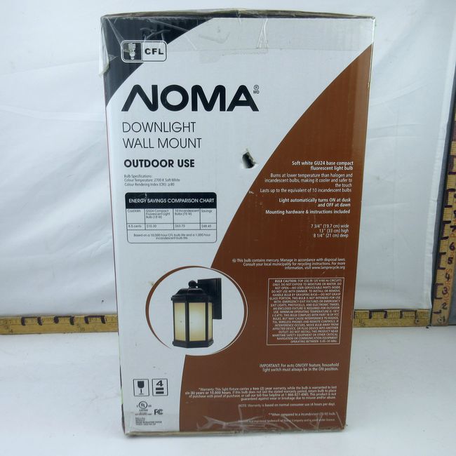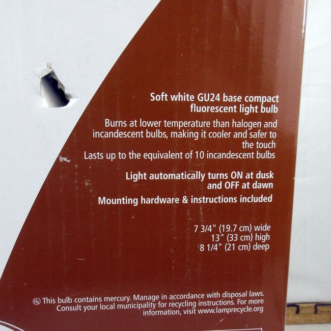 Current Bid: $20.00 [Refresh Price]YOU WILL NEED TO REFRESH THIS PAGE TO SEE UPDATED BID (Log in and this will update automatically) You must LOG IN or REGISTER to see this full page auction listing and bid. Auction is Over Winning Bid Amount: $20.00 **Lot Details: (35t) - 2nd New Noma DownLight Wall Mount Automatically turns on at Dusk and Off at Dawn, never used Log in to add this lot to your watch list or place a bid |