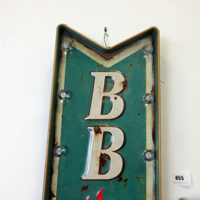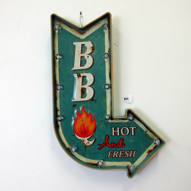 Current Bid: $15.75 [Refresh Price]YOU WILL NEED TO REFRESH THIS PAGE TO SEE UPDATED BID (Log in and this will update automatically) You must LOG IN or REGISTER to see this full page auction listing and bid. Auction is Over Winning Bid Amount: $15.75 **Lot Details: (55t) - Vintage metal "BBQ HOT and Fresh" working lightbulb Wall Sign, 23" high x 16" wide Log in to add this lot to your watch list or place a bid |