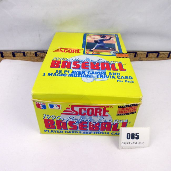 Current Bid: $50.01 [Refresh Price]YOU WILL NEED TO REFRESH THIS PAGE TO SEE UPDATED BID (Log in and this will update automatically) You must LOG IN or REGISTER to see this full page auction listing and bid. Auction is Over Winning Bid Amount: $50.01 **Lot Details: (85t) - Baseball 32 year old wax box. Contains 36 factory sealed wax packs that are security sealed in plastic. Dated 1990, dull box. Some good star and rookie cards! Log in to add this lot to your watch list or place a bid |